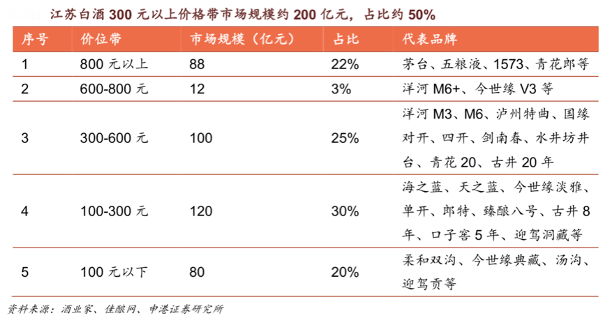 經典案例:根據公司公告、申港證券研究所等綜合資訊表明,洋河產品結構中,300 元以上價位中夢之藍系列已占全部營收比例 30% 以上,且約65%收入在江蘇省內,在江蘇消費領先全國升級的情況下,該市場的擴容將顯著帶動其營收增長。
