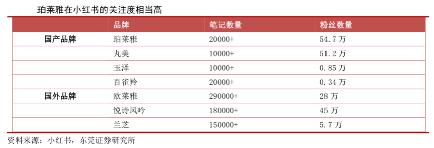 經(jīng)典案例:根據(jù)小紅書、東莞證券研究所等綜合資訊表明,珀萊雅在小紅書平臺的相關(guān)筆記數(shù)量達(dá)到 2 萬多條,且珀萊雅自身的小紅書賬號的粉絲數(shù)量達(dá)到54.7萬,在國產(chǎn)品牌內(nèi)排名前列,反映了其在社交平臺的營銷投放已初見效果,關(guān)注度相當(dāng)高,產(chǎn)業(yè)品牌營銷策劃初見成效。