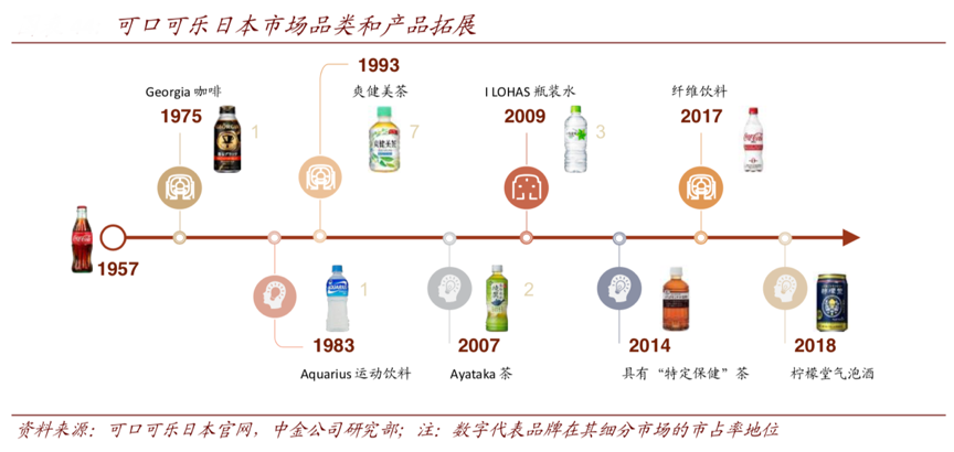 經典案例:根據可口可樂日本官網、中金公司研究部等綜合資訊表明,隨著年輕人對咖啡消費需求增加,可口可樂于 1975 年率先推出罐裝即飲咖啡“Georgia”,配合品牌營銷與渠道鋪陳, Georgia 成為日本即飲咖啡最暢銷品牌。2018 年更是首次推出含 酒精飲料“檸檬堂”氣泡酒,以迎合日本年輕女性的需求。