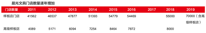 經典案例:根據公司公告、西部證券研發中心等綜合資訊表明,截至 2019 年底,晨光文具在全國擁有 38 家一級合作伙伴、1300 家二、三級合作 伙伴,在全國校邊商圈覆蓋率高達 80%。全國整體文具的零售終端為 18 萬家,平均每 10 家 校邊終端文具店就有約 4 家屬于晨光文具零售終端,形成了堅固的行業進入壁壘。