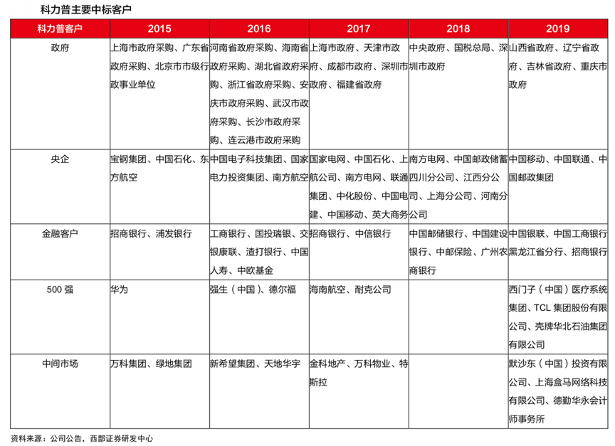 經典案例:根據公司公告、西部證券研發中心等綜合資訊表明,科力普的辦公直銷業務2016-2018年連續三年收入呈翻倍增長趨勢,2019年增長 41.45%, 當前科力普主要是為政府、企事業單位、世界 500 強企業提供高性價比辦公采購一站式服務,持續推動大客戶業務,并于2019 年下半年科力普推出針對中小型企業的采購平臺——科力普省心購,客戶類型持續擴大。