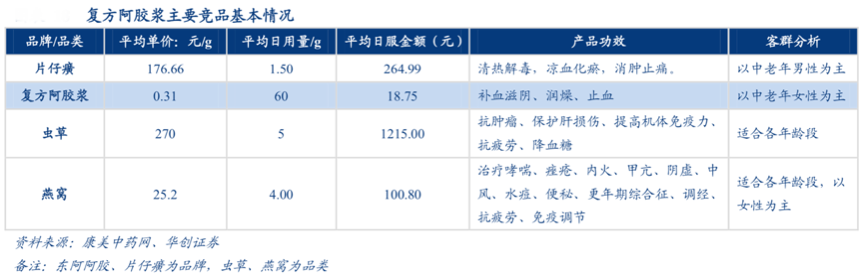 經典案例:根據公司官網、華創證券等綜合資訊表明,東阿阿膠優選地道原材料,產品包裝采用中國風設計,更適合高端女性和有禮品需求的人群,開發了極富女性氣質的“桃花姬”。