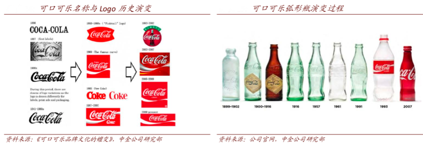 經典案例:根據《可口可樂品牌文化的嬗變》、公司官網、中金公司研部等綜合資訊表明,可口可樂于1916 年推出的經典弧形瓶,根據 1949 年的一項調查,僅有 1%的美國人不能通過瓶身形狀區別出可口可樂,弧形瓶已經成為可口可樂獨有的文化標識。