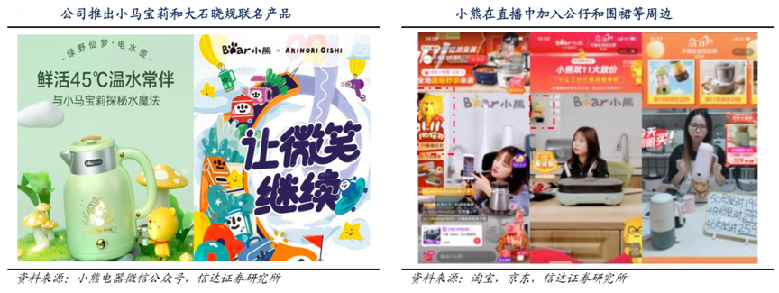 經(jīng)典案例:根據(jù)小熊電器微信公眾號、淘寶、京東、信達(dá)證券研究所等綜合資訊表明,小熊電器持續(xù)打造獨(dú)有品牌文化,在直播中進(jìn)行小熊 玩偶和圍裙等周邊植入,通過周邊塑造獨(dú)有的品牌形象與品牌文化,逐步構(gòu)成其區(qū)別美九蘇等大眾品牌的核心差異。通過此類周邊可以拉近與消費(fèi)者之間的距離, 提高品牌曝光率,最終則能夠提升消費(fèi)者對品牌的黏性。