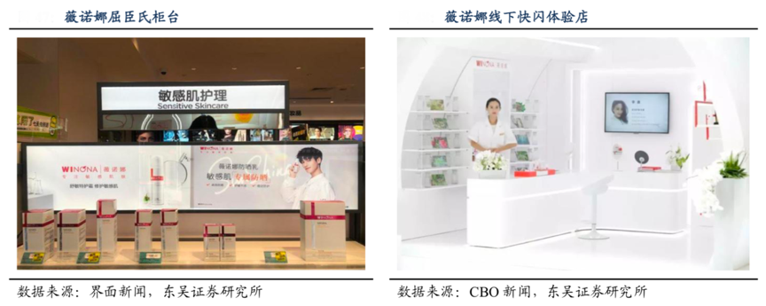 經典案例:根據界面新聞、CBO新聞、東吳證券研究所等綜合資訊表明,薇諾娜正大力強化線下終端體驗。(1)入駐專業 CS 連鎖:考慮到屈臣氏對于功效性護膚品的零售基礎和其在各線城市廣闊的布局,其于 2020 年 6 月正式入駐屈臣氏渠道,也是其入駐的首家連鎖 CS 渠道,根據界面新聞報道,公司計劃首批入駐 574 家門店,至2021 年擴展至 2000 家,并于三年內覆蓋屈臣氏所有門店。(2)開設品牌體驗店:未來其也將開設部分專門的線下品牌體驗門店,內部陳 設 AI 測膚等設備,以達到增加消費者線下體驗的機會、完善消費者人群畫像、提升品牌形象與知名度的目的。