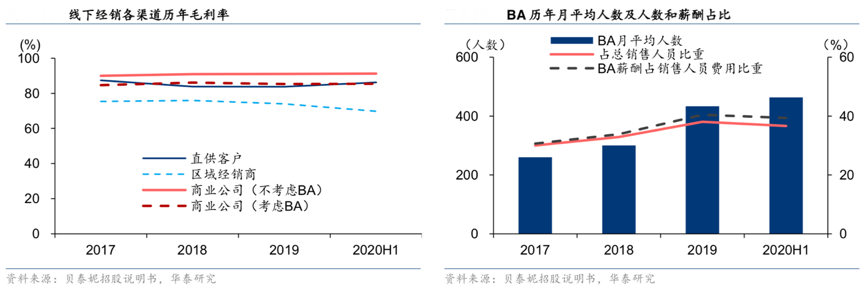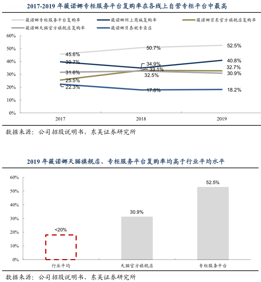 經典案例:根據貝泰妮招股說明書、華泰研究等綜合資訊表明,2019年薇諾娜線下選擇部分網點派駐BA,實現線下向線上的引流,其微信平臺的收入規模也實現快速增長,2019 年微信平臺的客戶復購率高達 52.52%,居各渠道首位。其根據商業公司渠道與薇諾娜專柜服務平臺的銷售收入比例對 BA 費用分攤,給予商業公司供貨價格及毛利率高于其他渠道。