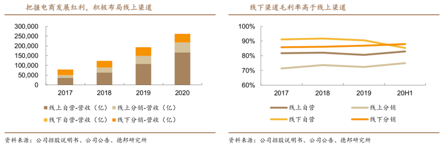 經典案例:根據公司招股說明書、公司公告、德邦研究所等綜合資訊表明,貝泰妮公司積極把握電商發展紅利,加大對線上渠道的建設。其線上自營收入占比由 2017 年的 46.16%提升至 2020 年的 63.28%,在天貓、京東等大型 B2C 平臺開設自營店鋪并建立薇諾娜網上商城進行商品的推廣與銷售,通過微信深耕私域流量,其跟隨行業趨勢增加線上平臺的促銷力度,積極參與 618、雙 11、 雙 12 等活動,部分產品的銷售價格下降帶來毛利率的降低。