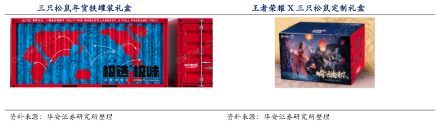經典案例:根據公司公告、公司官網、華安證券研究所等綜合資訊表明,年輕人更注重零食的趣味性,三只松鼠公司深耕娛樂化戰略,進一步拉近品牌和消費者的距離。在購買食玩的消費者中,90后以及95后消費者對食玩有更高的偏好度,食玩類型不斷豐富,進一步增添食玩趣味,異形零食、趣味包裝、新奇吃法以及趣味玩具等多種形式增添零食的樂趣,拉近了和消費者的距離。