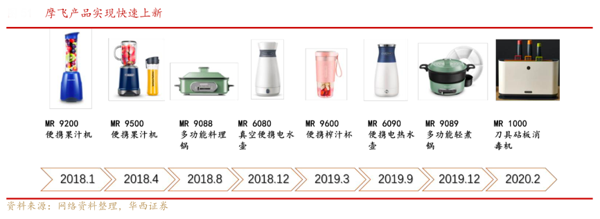 經典案例:根據網絡資料整理、華西證券等綜合資訊表明,小家電產品更新頻次高,快速上新的能力才能支撐爆品模式的可持續性。以新寶為例,其產品從理念到研發設計再到生產速度不斷加快,從過往的 6~12 個月進一步縮短至 3~6 個月,疫情期間于 2 月份推出新品消毒機,契合當下需求痛點,再次體現出對消費市場極高的敏銳度和上新速度。