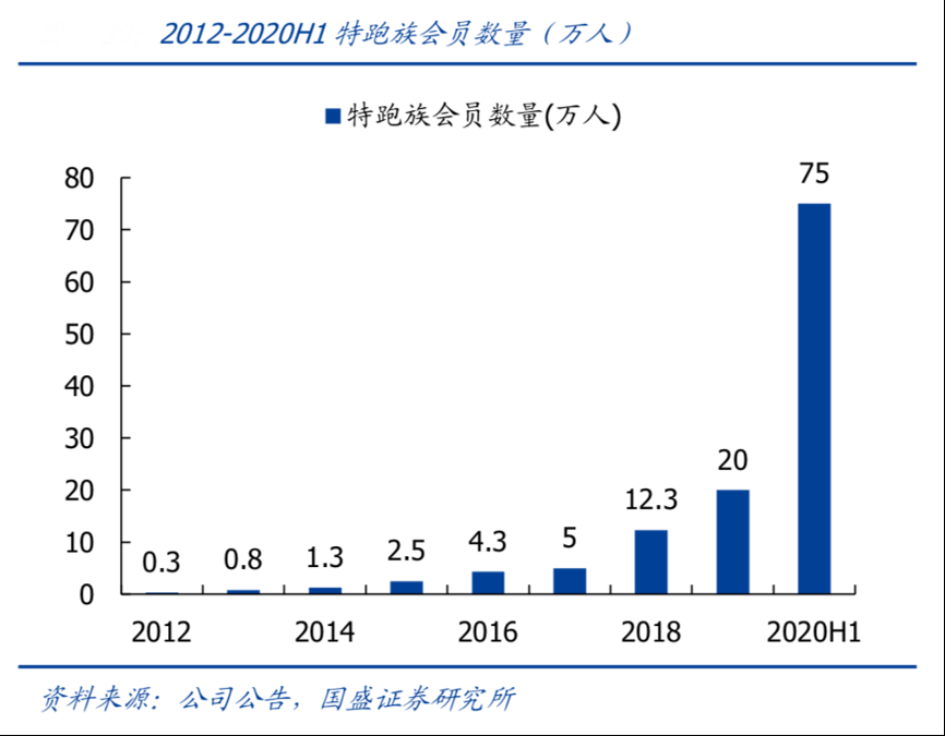 經(jīng)典案例:根據(jù)公司公告、國盛證券研究所等綜合資訊表明, 2012-2021H1特跑族會員數(shù)量持續(xù)增長,2021H1達(dá)75萬人,特步跑步俱樂部以特跑族會員需求為出發(fā)點(diǎn),有力增強(qiáng)了用戶粘 性和用戶忠誠度,同時,跑步俱樂部作為“跑者之家”,將城市各地的跑步愛好者聚集起來,營造專業(yè)運(yùn)動的氛圍,更好的傳遞品牌形象。