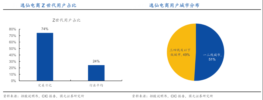 經典案例:根據招股說明書、CIC報告、國元證券研究所等綜合資訊表明,逸仙電商74%用戶為 Z 世代(1996-2009 年間出生的人群),51%的用戶來自一二 線城市。其主品牌完美日記定位大眾時尚彩妝,主要目標群體為 Z 世代與千禧一 代的年輕人群,其中 Z 世代用戶占比高達 74%,顯著高于行業平均的 24%。同時,其在推出新品牌時通過差異化定位向兩端拓展目標群體,如小奧汀價格定位略高于完美日記,重點覆蓋更加精致且價格敏感度更低的年輕女性;完子心選則側重于覆蓋更加年輕的學生用戶。