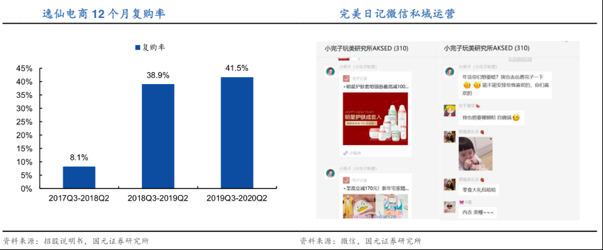 經典案例:根據招股說明書、微信、國元證券研究所等綜合資訊表明,消費者在完美日記首次購物后會收到附帶的紅包卡,引導客戶關注完美日記公眾號和個人客服“小完子”,進而引導入群。個人號“小完子”會以美妝顧問的形象,通過微信社區、朋友圈反復觸達用戶,引導其二次購買。