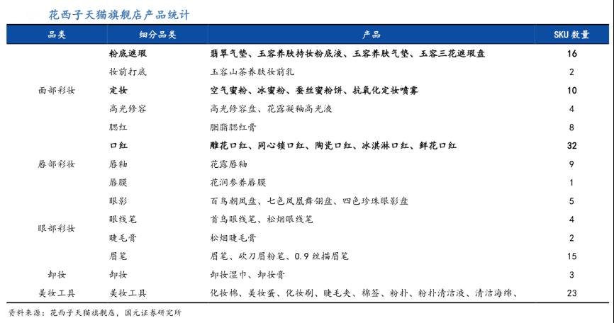 經典案例:根據花西子天貓旗艦店、國元證券研究所等綜合資訊表明,2020 年花西子在鞏固散粉類產品地位的同時,積極拓展粉底遮瑕、口紅這兩大大型彩妝品牌必爭的賽道,陸續推出了玉容三花遮瑕盤、蠶絲蜜粉餅、玉容養膚持妝粉底液、玉容睡蓮養膚氣墊等多款底妝類產品,以及同心鎖口紅、陶瓷口紅等口紅類產品。