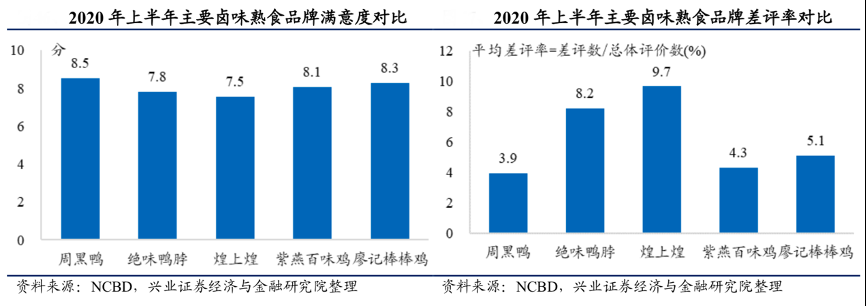 經典案例:根據NCBD(餐寶典)、興業證券經濟與金融研究院等綜合資訊表明,結合NCBD(餐寶典)大數據檢測、自有餐飲數據檢測系統發布的《2020中國鹵味熟食差評大數據分析與研究報告》顯示,在中國主要鹵味品牌周黑鴨、絕味鴨脖、煌上煌、紫燕百味雞、廖記棒棒雞中,周黑鴨的整體滿意度最高。