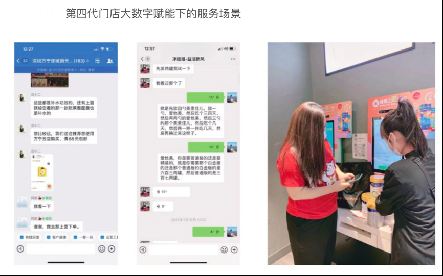 經典案例:根據CCFA《2021CCFA生活服務行業優秀實踐案例集》等綜合資訊表明,萬寧店鋪已全面運用微信導購系統,通過系統可以生成員工的專屬名片,通過企業背書增強顧客對員工的信任感。員工通過和顧客建立綁定關系,增加與顧客交流互動機會,成為顧客的私人顧問。作為私人顧問,員工導購可以進行會員管理,通過查看會員資料,包括:最近瀏覽記錄,會員名下 優惠券、積分、累計消費、客單價、會員生日等信息,了解顧客喜好。在此基礎上,在線下,員工手持手機看板可以借助導購功能服務顧客,運用商品與服務知識陪同購物。
