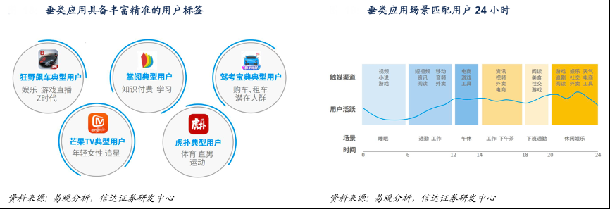 經(jīng)典案例:根據(jù)易觀分析、信達(dá)證券研發(fā)中心等綜合資訊表明,結(jié)合穿山甲與易觀聯(lián)合發(fā)布的《中國(guó)垂類(lèi)應(yīng)用流量營(yíng)銷(xiāo)價(jià)值洞察》,2020 年 11 月全網(wǎng)人均 每月使用 APP 個(gè)數(shù)為 25.2 個(gè),各類(lèi) APP 使用時(shí)長(zhǎng)較為平均,用戶觸達(dá)媒體呈現(xiàn)多元化與 碎片化特征。當(dāng)前垂類(lèi)應(yīng)用正處高速成長(zhǎng)期,社交電商、有聲閱讀、游戲平臺(tái)活躍用戶增速遠(yuǎn)高于全網(wǎng),2020 年 9 月垂類(lèi)應(yīng)用使用時(shí)長(zhǎng)僅次于騰訊系,占全網(wǎng)用戶使用總時(shí)長(zhǎng)比例超 過(guò) 1/4。垂類(lèi)應(yīng)用具備較高營(yíng)銷(xiāo)價(jià)值。