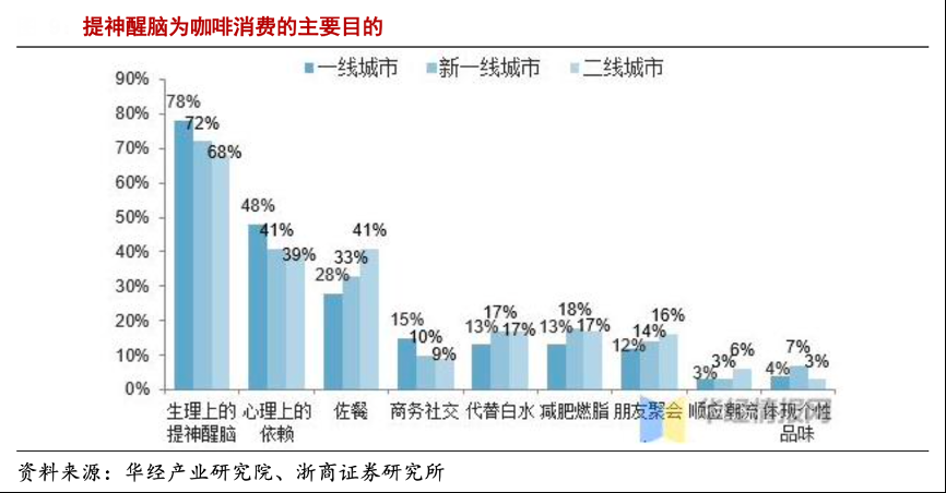 經典案例:根據華經產業研究院、浙商證券研究所等綜合資訊表明,咖啡自取模式的目標客群非常龐大,高于第三空間模式。“第三空間”并非咖啡消費者的剛需。根據華經產業研究院數據,商務社交等需第三空間的咖啡消費目的目前僅排名第四,提神醒腦的“功能性消費”才是目前最重要的咖啡消費目的。