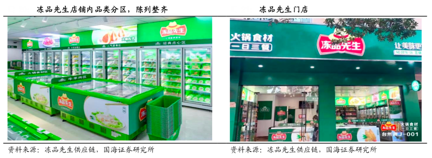 經典案例:根據凍品先生供應鏈、國海證券研究所等綜合資訊表明,凍品先生使安井距離C端消費者更近一步,凍品先生冷凍食品專賣店幫助全國各地的凍品先生客戶在當地開店,使當地經銷商線下和線上融為一體。凍品先生專賣店直面 C 端,形成持續的記憶點,也促進了安井線下品牌宣傳及在 C 端消費人群的滲透力。