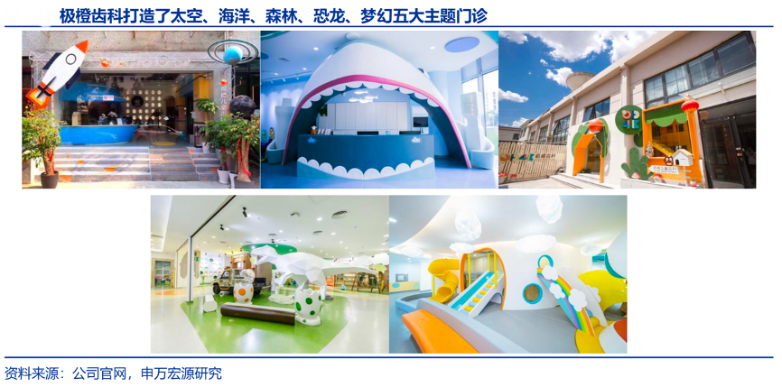經(jīng)典案例:根據(jù)公司官網(wǎng)、申萬(wàn)宏源研究等綜合資訊表明,極橙以“幫孩子快樂(lè)看牙”為使命,首創(chuàng)沉浸式游戲化看牙體驗(yàn),并將每家診所都打造成孩子 的“主題游樂(lè)場(chǎng)”,為孩子開(kāi)發(fā)身臨其境的體驗(yàn)。現(xiàn)已有太空、海洋、森林、海陸空三大主題。