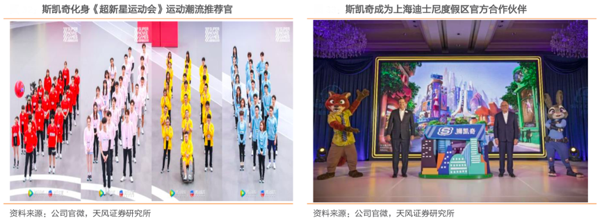 經(jīng)典案例:根據(jù)公司官微、天風(fēng)證券研究所等綜合資訊表明,為了提高年輕族群,尤其是 Z 世代對斯凱奇的認(rèn)可度,其與娛樂節(jié)目合作,譬如《超新 星運(yùn)動會》的運(yùn)動員都穿上斯凱奇的運(yùn)動裝備;贊助專業(yè)跑步賽事、街舞比賽,年輕人喜歡的活動就會支持,并且在社交媒體上進(jìn)行傳播;在親子市場會和兒童節(jié)目合作,和迪士尼樂園也是戰(zhàn)略合作關(guān)系,通過知識產(chǎn)權(quán)的合作開拓兒童市場。