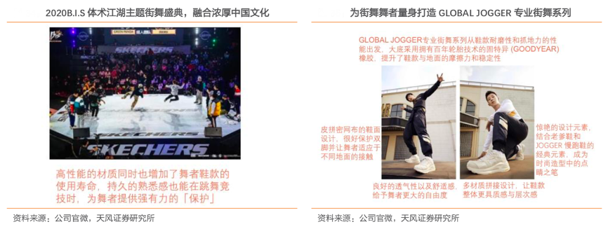 經(jīng)典案例:根據(jù)公司官微、天風(fēng)證券研究所等綜合資訊表明,自 2008 年進(jìn)入中國市場后,斯凱奇品牌成立斯凱奇中國街舞明星隊(duì)、舉辦斯凱奇街舞學(xué)院巡演等,并在 2014 年與 B.I.S 國際街舞比賽達(dá)成合作。