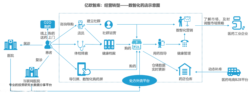 經(jīng)典案例:根據(jù)億歐智庫《億歐智庫-醫(yī)藥行業(yè):2021年中國藥店創(chuàng)新趨勢報告》等綜合資訊表明,數(shù)智化藥店,即利用互聯(lián)網(wǎng)、物聯(lián)網(wǎng)、人工智能等創(chuàng)新技術(shù),利用各類資源,構(gòu)建藥店數(shù)智化供應(yīng)鏈體系,提升藥店數(shù)智化營銷與藥事服務(wù)能力,推動藥店數(shù)智化運(yùn)營和管理,同時有效的連接醫(yī)藥工業(yè)與醫(yī)藥零售端,促進(jìn)醫(yī)藥工業(yè)端深刻理解終端患者。
