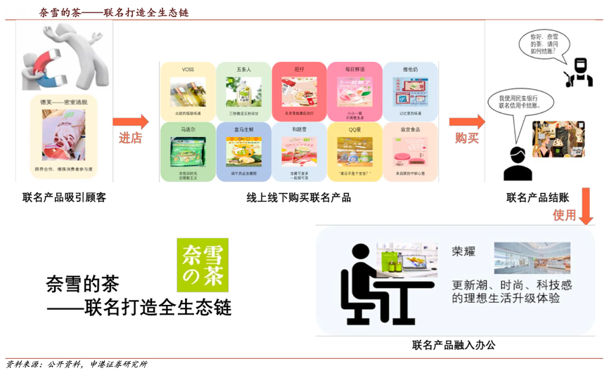 經(jīng)典案例:根據(jù)公開資料、申港證券研究所等綜合資訊表明,奈雪與很多潮流生活方式品牌推出各種聯(lián)名活動(dòng),多維度跨界,體現(xiàn)其藝術(shù)感及個(gè)性化,與消費(fèi)者進(jìn)行精神互動(dòng)。同時(shí),奈雪的員工被鼓勵(lì)保持快樂,并將快樂的文化及積極向上的氛圍傳遞給客戶。