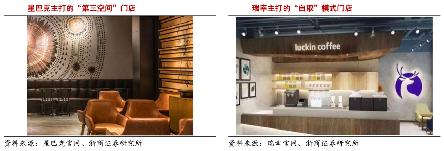 經典案例:根據星巴克官網、瑞幸官網、浙商證券研究所等綜合資訊表明,為了和星巴克錯位競爭,中端品牌普遍有更好的性價比。這主要來自于星巴克采用的是“第三空間”模式,而中端品牌主要采取的是“自取”模式。