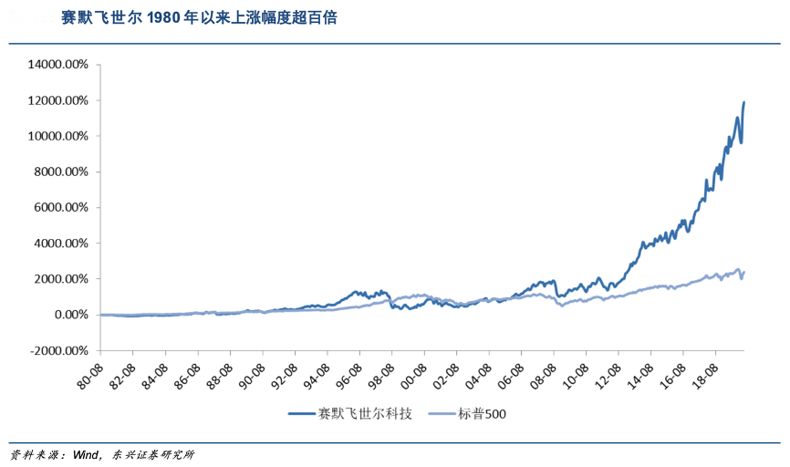 經典案例:根據wind、東興證券研究所等綜合資訊表明,賽默飛世爾(Thermo Fisher)成立于1956年,經過幾十年的發展,賽默飛世爾已經成長為全球雇員超過 7.5 萬人,年收入超過 255 億美元,市值超過 1379.1 億美元的全球儀器儀表領導者。