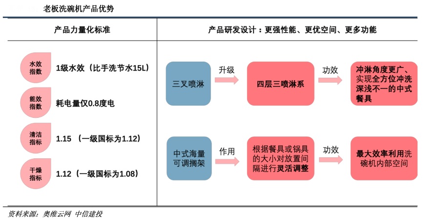 經(jīng)典案例:根據(jù)奧維云網(wǎng)、中信建投等綜合資訊表明,以油煙機(jī)為例,自業(yè)內(nèi)率先提出“大吸力”概念以來,老板在 2012 年又提出“攏吸、強(qiáng)濾、速排、 節(jié)能”大吸力油煙機(jī)的四大標(biāo)準(zhǔn),之后依托自身技術(shù)積累又在業(yè)內(nèi)率先推出雙腔大吸力油煙機(jī)新品,并同時(shí)發(fā)布第五代大吸力油煙機(jī)標(biāo)準(zhǔn)。產(chǎn)品端持續(xù)的技術(shù)迭代創(chuàng)新使得老板煙灶品類的產(chǎn)品力始終領(lǐng)先于同業(yè),這也構(gòu)成其穩(wěn)固并不斷提升自身高端市場(chǎng)份額的堅(jiān)實(shí)基礎(chǔ)。