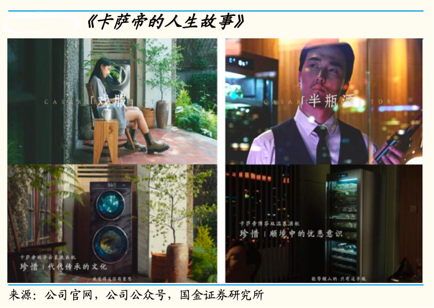 經典案例:根據公司官網、公司公眾號和國金證券研究所等綜合資訊表明,卡薩帝通過新媒體、話題與 IP 將高質量、有創意有內容的營銷方案推出,實現內容持續發酵和引爆。如 2019 年度其推出的廣告故事片《卡薩帝 的人生故事》,采用《戲服》、《半瓶酒》等 6 組人物故事相銜接,一個故事對應一種產品+一個家庭+一種人生品格,此案例斬獲“2019中國數字化營銷金牛獎——最佳內容營銷獎”。