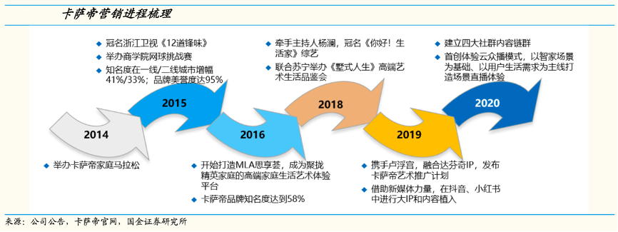 經典案例:根據公司公告、卡薩帝官網、國金證券研究所等綜合資訊表明,2015年,卡薩帝整體網絡在一二級市場基本實現全覆蓋,成為國內一二線市場最早全覆蓋的品牌。此后,其在扎根一二線的基礎上不斷進行渠道深耕,截至 2020 年底縣級以上市場網絡覆蓋率已提升至95%,渠道下沉全面強化了國民高端品牌的定位。