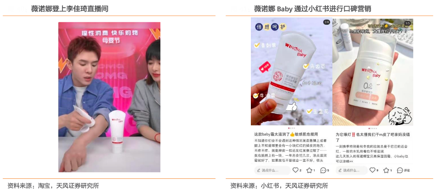 經(jīng)典案例:根據(jù)淘寶、小紅書(shū)、天風(fēng)證券研究所等綜合資訊表明,薇諾娜Baby的客群和主品牌客群用戶較為匹配,主品牌薇諾娜的主要用戶客群以都市中的女性客群為主,消費(fèi)能力較強(qiáng),同時(shí)對(duì)產(chǎn)品品質(zhì)較為注重,同時(shí)購(gòu)買(mǎi)薇諾娜的敏感肌人群通常對(duì)安全性較為看重,與薇諾娜 Baby 注重安全性的屬性相契合,薇諾娜 Baby21年開(kāi)始發(fā)力線上渠道,雙十一即成功進(jìn)入天貓嬰童護(hù)膚類(lèi)目TOP10,榮登年度排名TOP20,同比實(shí)現(xiàn)超 10 倍增長(zhǎng),其中爆款產(chǎn)品“舒潤(rùn)滋養(yǎng)霜”系列單品,獲得細(xì)分行業(yè)單品 TOP3。