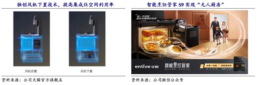 經(jīng)典案例:根據(jù)公司天貓官方旗艦店、公司微信公眾號(hào)、開(kāi)源證券研究所等綜合資訊表明,2020年,億田公司聯(lián)合阿里天貓發(fā)布行業(yè)首臺(tái)具有成熟語(yǔ)音交互功能的云智能集成灶D5Z,可通過(guò)語(yǔ)音交互實(shí)現(xiàn)蒸箱操控、調(diào)溫定時(shí)、風(fēng)量調(diào)節(jié)、控?zé)絷P(guān)停、甚至娛樂(lè)功能。2021年,公司推出全球首例“冰蒸一體”智能烹飪管家S9,集成了煙機(jī)、灶具、蒸箱、保鮮柜、煮飯機(jī)器人等多種功能,實(shí)現(xiàn)食材全自動(dòng)清洗與烹飪,打造無(wú)人廚房。