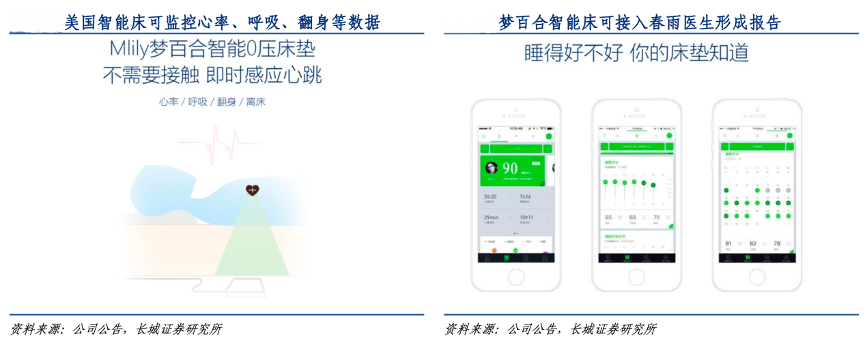經典案例:根據公司公告、長城證券研究所等綜合資訊表明,夢百合與國內知名在線醫療平臺春雨醫生合作,一方面通過智能電動床將消費者的睡眠質量數據化,與春雨醫生醫療資源打通,達到精細問診的效果;另一方面,春雨醫生平臺上的睡眠障礙患者也可導流至夢百合,夢百合客戶群體精準擴大,雙方實現互利共贏。