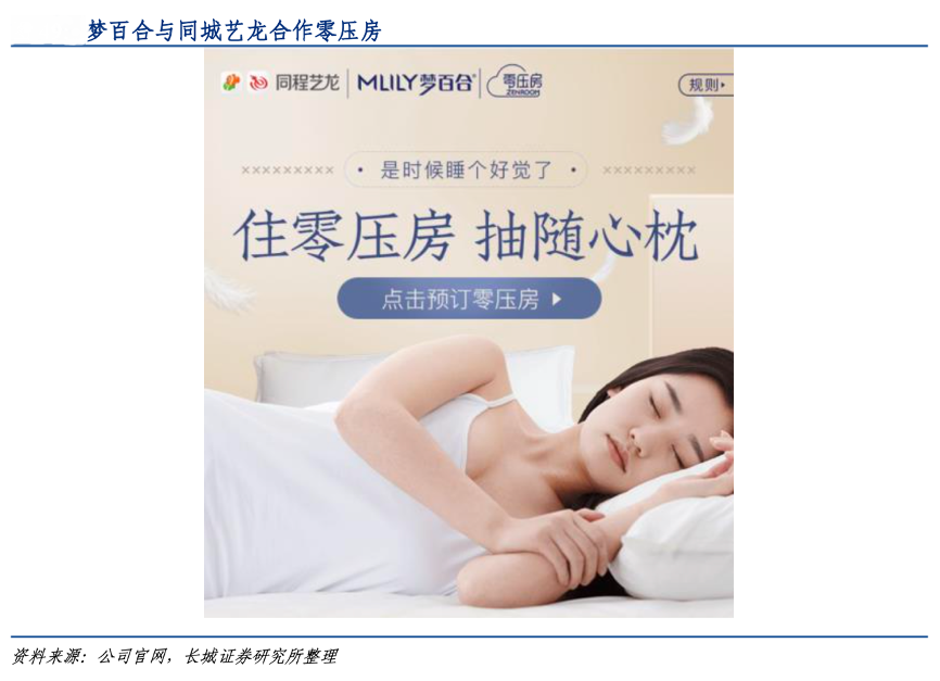 經典案例:根據公司官網、長城證券研究所等綜合資訊表明,夢百合與酒店的合作空間通過酒店 OTA 平臺打開。2019 年起,其逐步與同城藝龍、攜程、美團達成戰略合作,通過平臺觸及更多的酒店。以攜程為例,攜程在國內簽約合作酒店的數量已超過 16000 家,可有效協助夢百合開拓酒店零壓房市場。與此同時,通過在酒店OTA 平臺 APP 設立“零壓 房”主題標簽,夢百合的曝光和品牌效應得到加強。