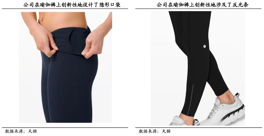 經典案例:根據天貓、國泰君安證券研究等綜合資訊表明,lululemon公司還在瑜伽褲領域發明了諸多具備創新性的設計,并一直沿用至今,如隱形口袋:產品在雙側或后腰設有隱形口袋,可以在運動時用于裝手機等貼身物品。