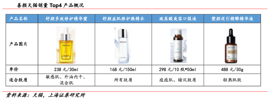 經(jīng)典案例:根據(jù)天貓、上海證券研究所等綜合資訊表明,善顏?zhàn)鳛槟壳皣?guó)內(nèi)量膚定制最為成熟的品牌之一成立于2004 年。其以“東方女性肌膚大數(shù)據(jù)平臺(tái)”為基礎(chǔ),針對(duì)女性肌膚中出現(xiàn)的16類問題,研發(fā)生產(chǎn)了舒顏、潤(rùn)顏、清顏、嬌顏、塑顏、亮顏6大系列產(chǎn)品。依托福瑞達(dá)實(shí)驗(yàn)室、山東藥學(xué)科學(xué)院的研發(fā)實(shí)力和全球化的原料供應(yīng)鏈體系,善顏成功成為國(guó)妝精準(zhǔn)護(hù)膚最成熟的品牌之一。