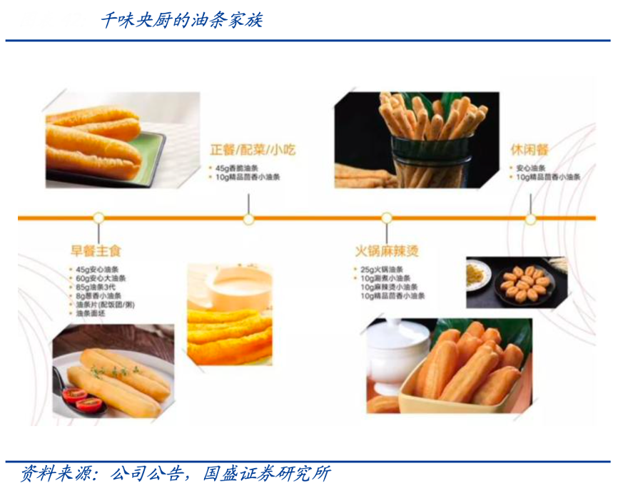 經典案例:根據公司招股說明書、國盛證券研究所等綜合資訊表明,千味央廚以大單品油條為例,其自2012年起就著手油條細分市場的探索與創新研發,確定了火鍋、快餐、自助餐、宴席、早餐、外賣六大場景,針對性推出茴香小油條、 麻辣燙小油條、火鍋涮煮油條、外賣專用油條等多款創新性產品,更針對不同客戶需求推出了多款創新型油條產品,如太二酸菜魚的黑油條、海底撈的咸蛋黃油條等。通過大單品深度挖掘,公司進一步打開單品增長天花板,為公司帶來持續穩定的業績貢獻。