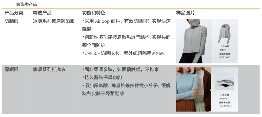 解析現象級技術,點亮核心級價值。現象級技術,創造現象級產品感知,點亮現象級“爆品”。新的產品,或以新產品功能點燃用戶消費熱情,或以新材料應用獲得“產品效用”大提升,如蕉下服裝產品多采用輕薄透氣的AirLoop 面料,加速散熱,確保透氣性,具備清涼觸感,高達 UPF50+ 的防曬效果。