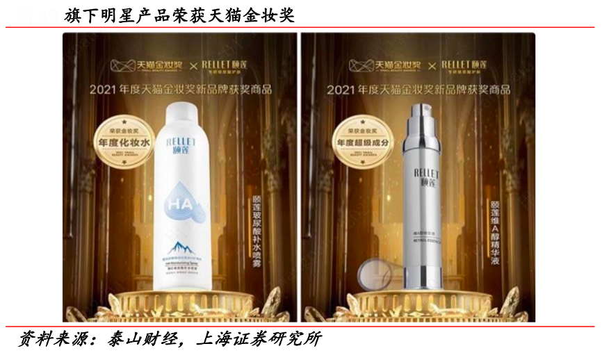 經(jīng)典案例:根據(jù)泰山財(cái)經(jīng)、上海證券研究所等綜合資訊表明,頤蓮在玻尿酸技術(shù)迭代方面乘上“成分黨”東風(fēng),包裝簡約,依靠“藥學(xué)科學(xué)院+全球玻尿酸生產(chǎn)基地”專業(yè)背書,獲得消費(fèi)者的信賴與認(rèn)可。其推出并持續(xù)迭代 6 代玻尿酸產(chǎn)品,成功打造頤蓮玻尿酸補(bǔ)水噴霧明星產(chǎn)品,累積銷量突破 1500 萬瓶,引領(lǐng)業(yè)績增長。頤蓮玻尿酸補(bǔ)水噴霧入圍天貓金妝獎(jiǎng)年度化妝水, 維 A 醇精華液入圍金妝獎(jiǎng)年度超級成分商品。