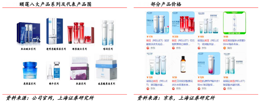 經(jīng)典案例:根據(jù)公司官網(wǎng)、京東、上海證券研究所等綜合資訊表明,頤蓮 SKU 豐富,把握行業(yè)動(dòng)向并緊跟潮流熱點(diǎn),被譽(yù)為“國貨潮品”,且除主要護(hù)膚品類以外,產(chǎn)品品類涵蓋彩妝品類。產(chǎn)品性價(jià)比較高,價(jià)格均百元左右,易受學(xué)生等中低端消費(fèi)者歡迎。