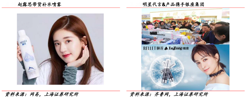 經典案例:根據網易、齊魯網、上海證券研究所等綜合資訊表明,頤蓮攜手銀座集團,邀請明星代言,賦能營銷新生態。在 KOL 合作方面,覆蓋多個社 交網絡平臺的達人,其中李佳琪直播帶貨助力補水噴霧銷售,趙露思推薦引發粉絲搶購。