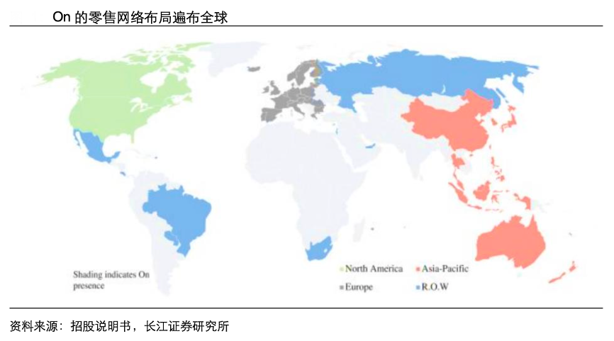 經典案例:根據招股說明書、長江證券研究所等綜合資訊表明,On Running(On/昂跑)是一個以瑞士工藝和前沿科技、可持續發展為基礎,致力于為 世界帶來革新性跑步體驗的高端運動品牌,由瑞士職業運動員、三屆世界冠軍兼六屆鐵 人三項冠軍 Olivier Bernhard 與兩位好友兼跑步愛好者 Caspar Coppetti 和 David Allemann 于 2010 年 1 月在瑞士蘇黎世一起創立。緩震著陸、強力回彈、輕盈質感的設計理念始終是 On 的研發核心,其旗下所有鞋款的鞋底均搭載自有專利科技 CloudTec。截至 2021H1,On 在全球 60 多個國家擁有 8100 家零售店,其中自營店包括一家紐約旗艦店和四家中國零售店,截至目前中國已開 9 家自營店。
