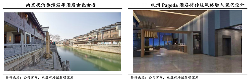 經典案例:根據公司官網、東亞前海證券研究所等綜合資訊表明,君亭酒店每一家店不僅共同營造東方文化整體氛圍,而且分別突出了地方文化特色,給人耳目一新的感覺。例如南京夜泊秦淮君亭酒店以東晉書法家王獻之與愛妾桃葉的浪漫愛情故事為背景,隔岸就是金陵四十八景之一的“古桃葉渡”,從踏入酒店撲面而來就是滿滿的浪漫色彩。而“Pagoda 君亭”品牌則注重“東西方美學的融合”,靈動的功能空間、年輕的色彩美學,體現了其設計上的國際品質基因與中國城市文化結合的特點。