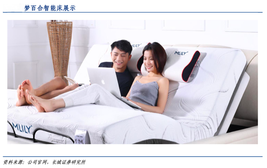 經典案例:根據公司官網、長城證券研究所等綜合資訊表明,由于智能床需要實現姿勢輔助變化的功能,因此只能搭配可以配合變化的記憶棉床墊。通過和記憶棉床墊一起在終端協同展示,智能床能夠快速導入夢百合的銷售渠道;特別是國內的線上渠道,夢百合公司的智能床+床墊的采用低價引流的銷售方式,有望加快睡眠智能化發展及記憶 棉床墊的推廣。