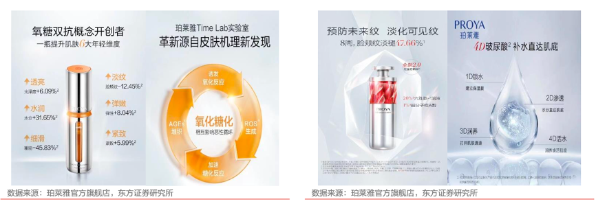 經典案例:根據珀萊雅官方旗艦店、東方證券研究所等綜合資訊表明,珀萊雅公司2021年初對紅寶石和雙抗精華進行產品成分升級,推出 2.0 系列,2022 年女王節其“早C晚A套餐”銷售件數超 7.8 萬支,品牌位居天貓國貨美妝TOP1。2021年其大單品在其天貓平臺銷售額占比達60%左右。