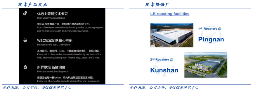 經典案例:根據公司官網、公司公告、安信證券研究中心等綜合資訊表明,瑞幸首個烘焙基地于 2021 年正式投產,基地總投資 2.1 億 元、占地面積 4.5 萬m²、咖啡豆年烘焙產能 1.5 萬噸,采用國際先進技術、配備全套進口先進生豆處理設備,是國內較為領先的全產線自動化智慧型烘焙基地,標志著瑞幸咖啡將逐步打通并實現全產業鏈的延伸。