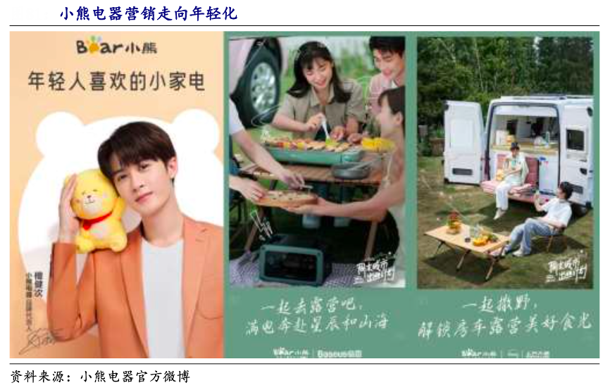 經典案例:根據小熊電器招股說明書、小熊電器公司公告、開源證券研究所等綜合資訊表明, 2022 年 5 月小熊電器提出品牌戰略升級規劃積極求變,品牌定位由原先的“萌家電”轉換為“年輕人喜歡的小家電”,產品端聚焦精品化戰略,更加注重產品的創新、品質和涉及等。