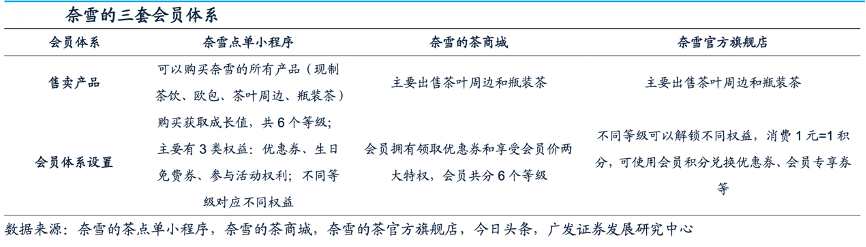 經典案例:根據奈雪的茶點單小程序、奈雪的茶商城、奈雪的茶官方旗艦店、今日頭條、廣發證券發展研究中心等綜合資訊表明,奈雪目前擁有奈雪點單、奈雪的茶商城、奈雪官方旗艦店三套會員體系,會員注冊人數及活躍會員人數逐年增長,2020/2021/2022H1會員注冊數約為2790/4330/4990萬人,活躍會員人數約為 580/700/720萬人。
